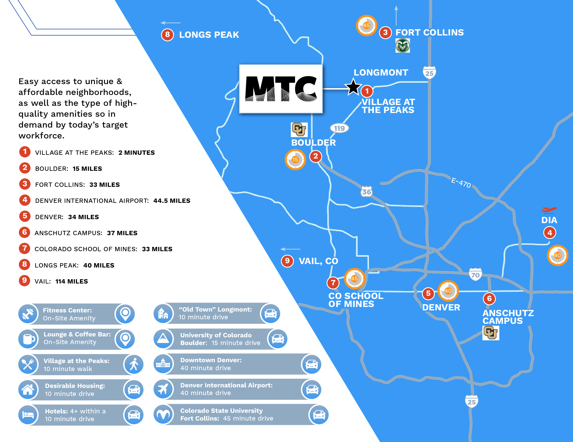 Longmont is one of the most strategic locations for bioscience businesses in Colorado. Ideally positioned to attract top talent from Denver and Boulder, the area offers a unique combination of infrastructure, affordability, quality of life, a skilled workforce, and a business-friendly climate.